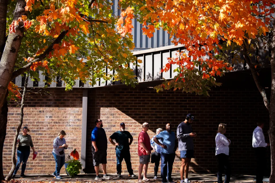 Voters line up outside the Montgomery County Veterans Center in Clarksville.