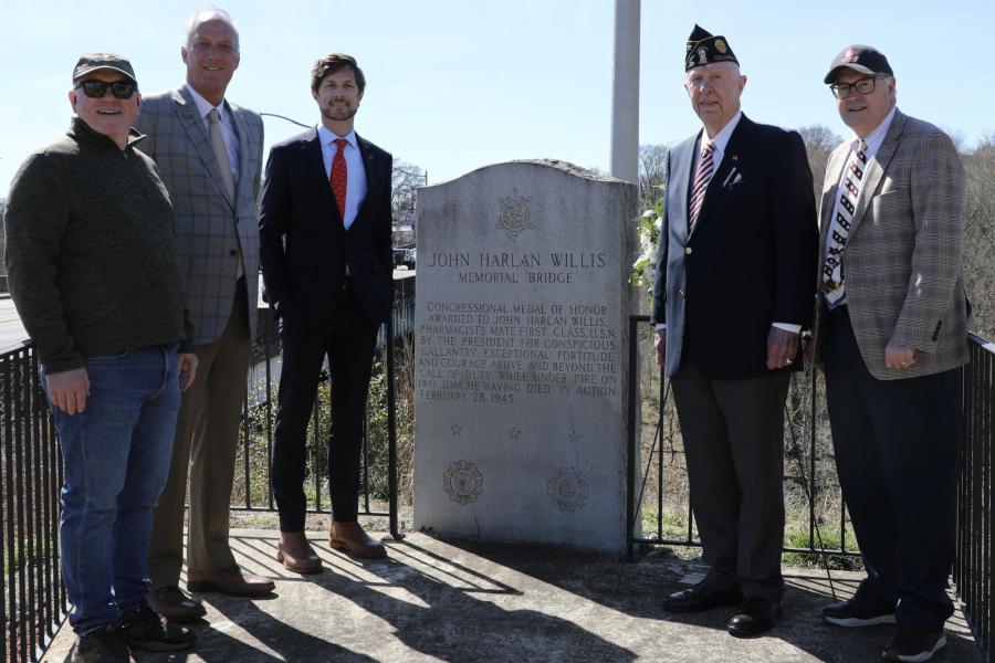 Officials with the city of Columbia, military representatives, community, and family members gathered to honor what would have been the 80th birthday of local Medal of Honor recipient John Harlan Willis at the bridge into downtown named in his honor. Officials held a wreath-laying ceremony at the John Harlan Willis Bridge Memorial to honor the Columbia native, vowing to continue preserving his legacy in the city. Willis enlisted in the U.S. Navy in 1940. Serving with the 3rd Battalion, 27th Marines on Iwo Jima on Feb. 19, 1945, Willis was wounded by shrapnel while serving aiding fallen Marines as a company platoon corpsman. Ordered to retreat to the aid tent, he refused and continued to resume assistance, treating a wounded Marine. When the enemy began throwing hand grenades at the location, Willis caught and returned eight back to the enemy. The ninth exploded in his hand. For his bravery, he was posthumously awarded the Medal of Honor. Willis’ 80th birthday would have been Feb. 28, 2025.