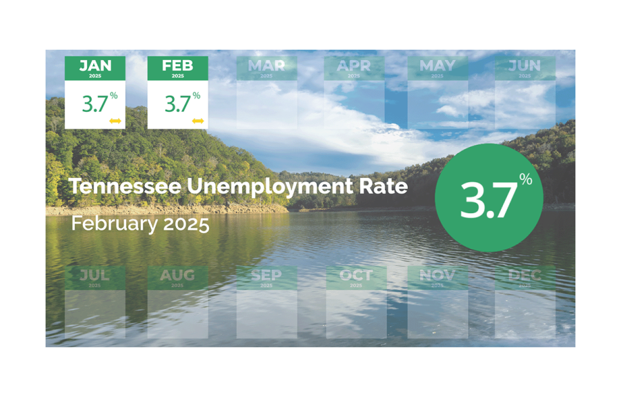 Unemployment in Tennessee remained steady at 3.7% in February, the six continuous month at that average. The Tennessee Department of Labor and Workforce Development (TDLWD) said the rate has remained unchanged since September. In 2024, the February unemployment rate was 3.1%. Tennessee’s unemployment rate continues to remain below the national rate, which was 4.1% in February, up one-tenth of a percentage point from the previous months and two-tenths of a percentage point from this time last year. Between January and February, total nonfarm employment increased by 9,100 jobs. The Education and Health Services sector accounted for the biggest increases, followed by the Trade, Transportation, and Utilities sector and the Leisure and Hospitality sector. View a complete analysis of the February 2025 unemployment data for Tennessee.