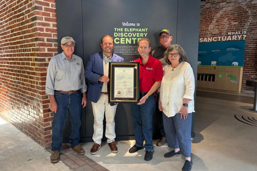 The Elephant Sanctuary in Tennessee, located in Hohenwald, has celebrated 30 years of ongoing impact in animal welfare, conservation, and education. The anniversary was marked by House Joint Resolution 508, introduced by State Rep. Jody Barrett , R-Dickson and cosponsored by State Sen. Joey Hensley, R-Hohenwald, was officially passed by the Tennessee General Assembly and signed by Governor Bill Lee. State Rep. Barrett and Sen. Joey presented the resolution at The Elephant Discovery Center along with Dr. Steven Scott (Director of Veterinary Care), Steve Shurter (COO) and Janice Zeitlin (CEO).