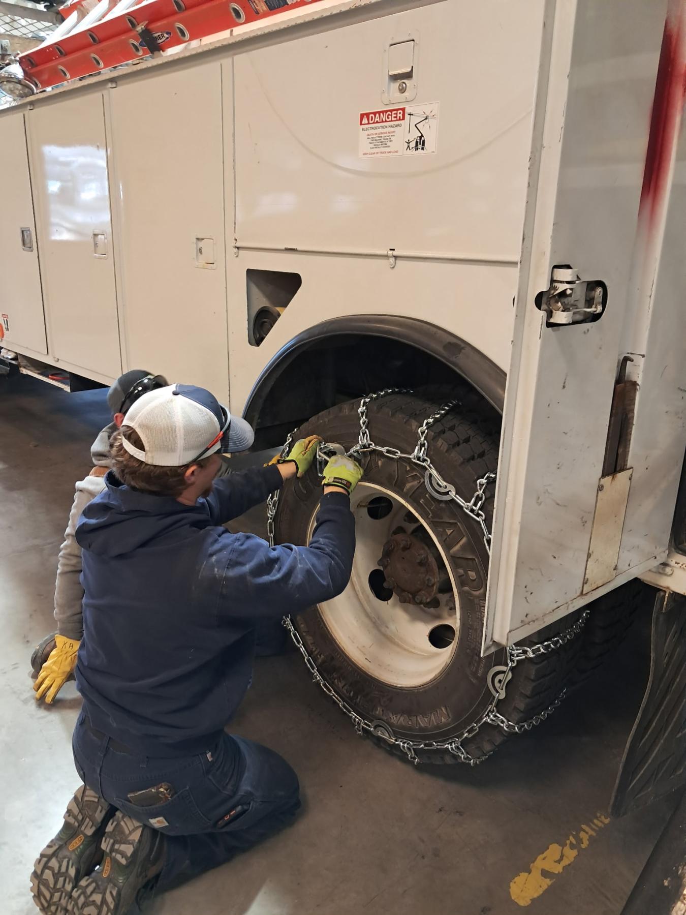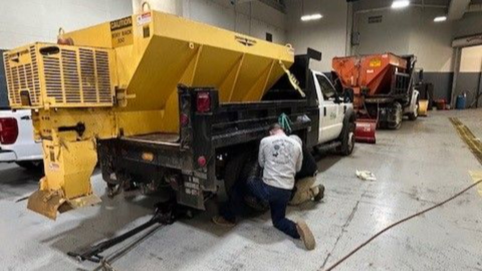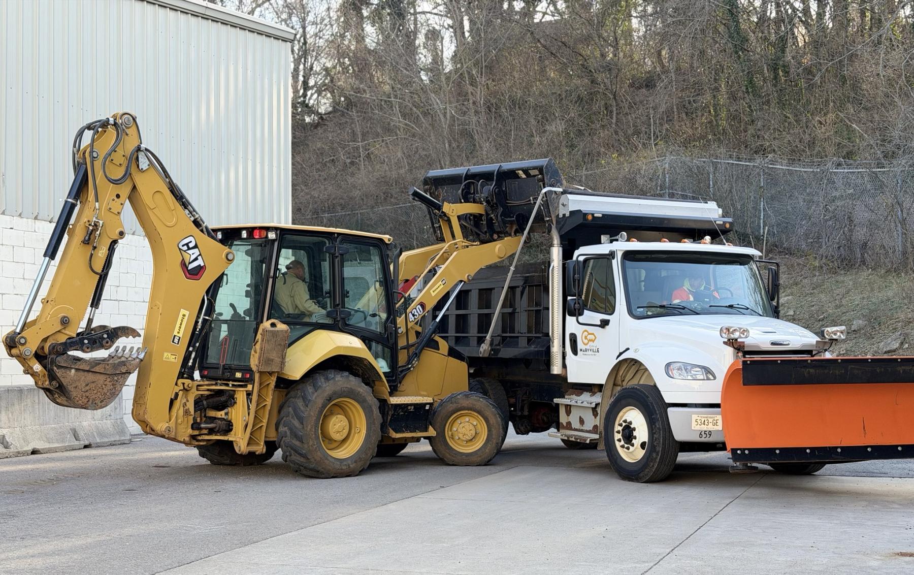 An Oak Ridge Public Works Department employee works to prep the city's snow removal equipment prior to the storm. (Photo by Oak Ridge).